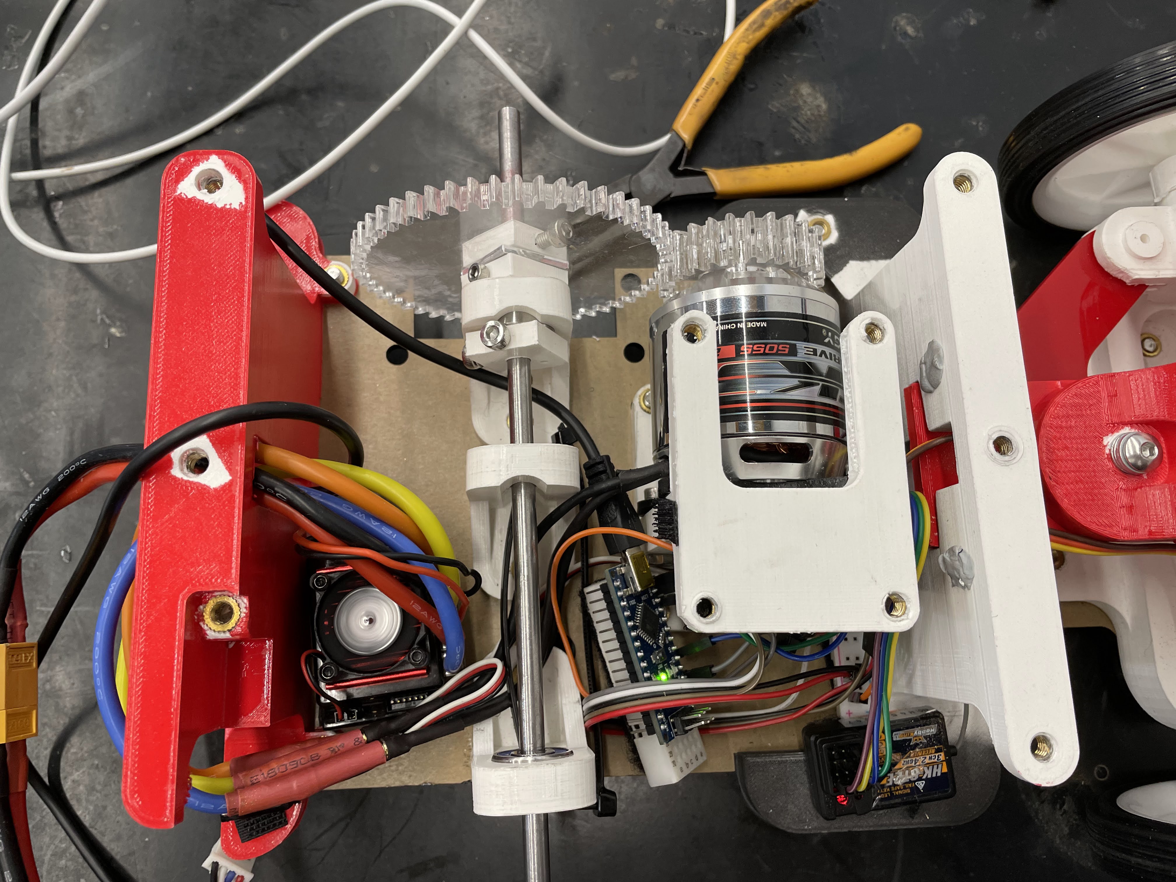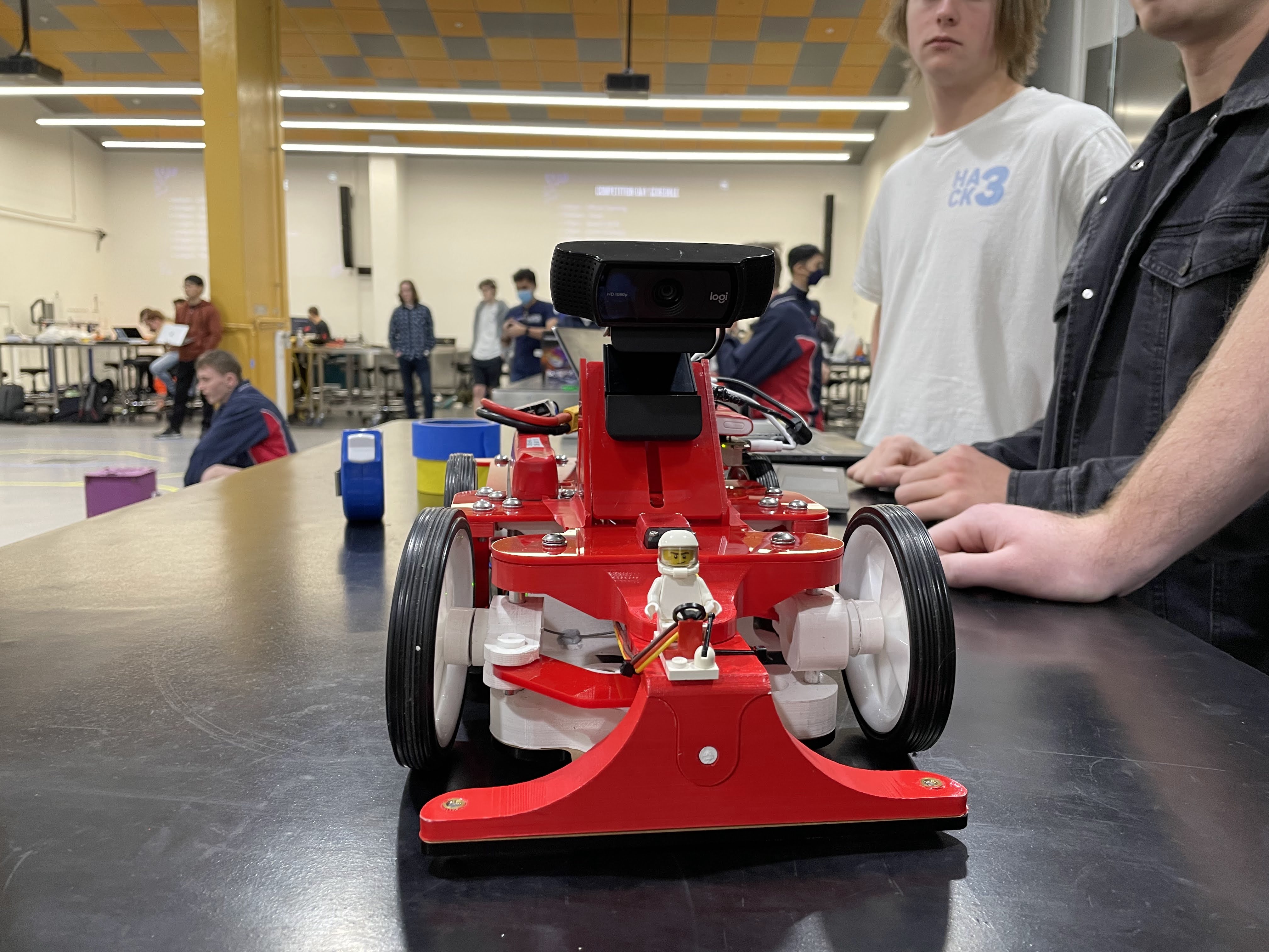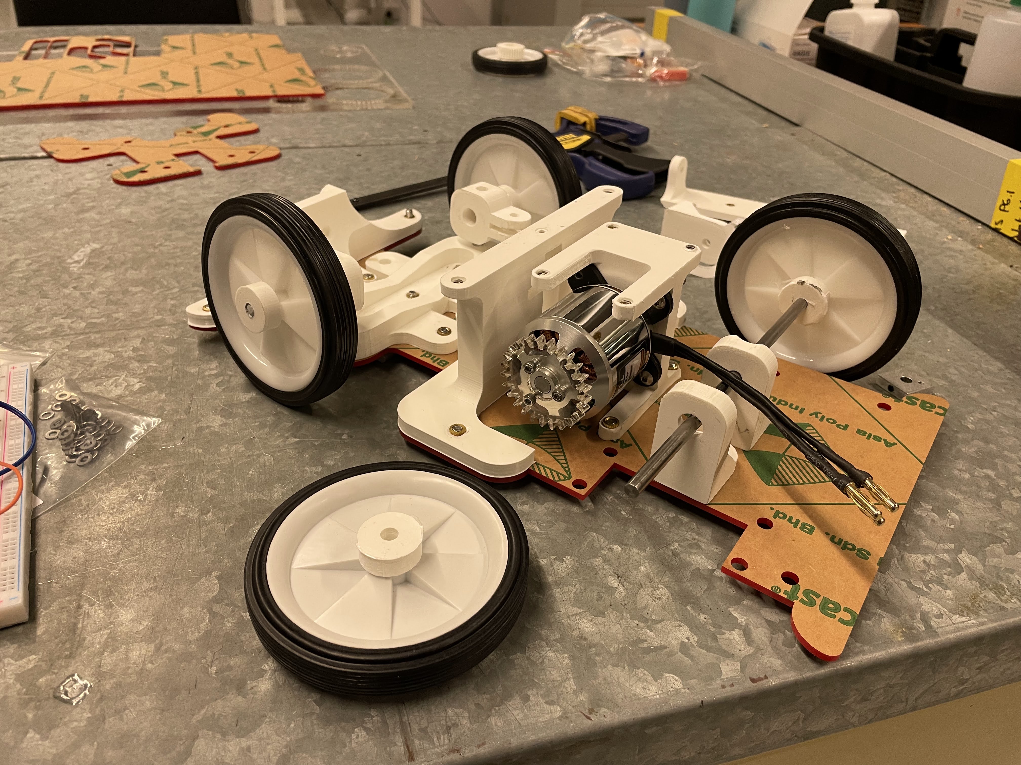 - Using gears as our drivetrain resulted in a critical design flaw that resulted in the droid being speed limited due to no breaking ability. This slowed our performance, particularly with navigating tight corners. If the team was to re-attempt the competition, a belt driven drivetrain is of interest.