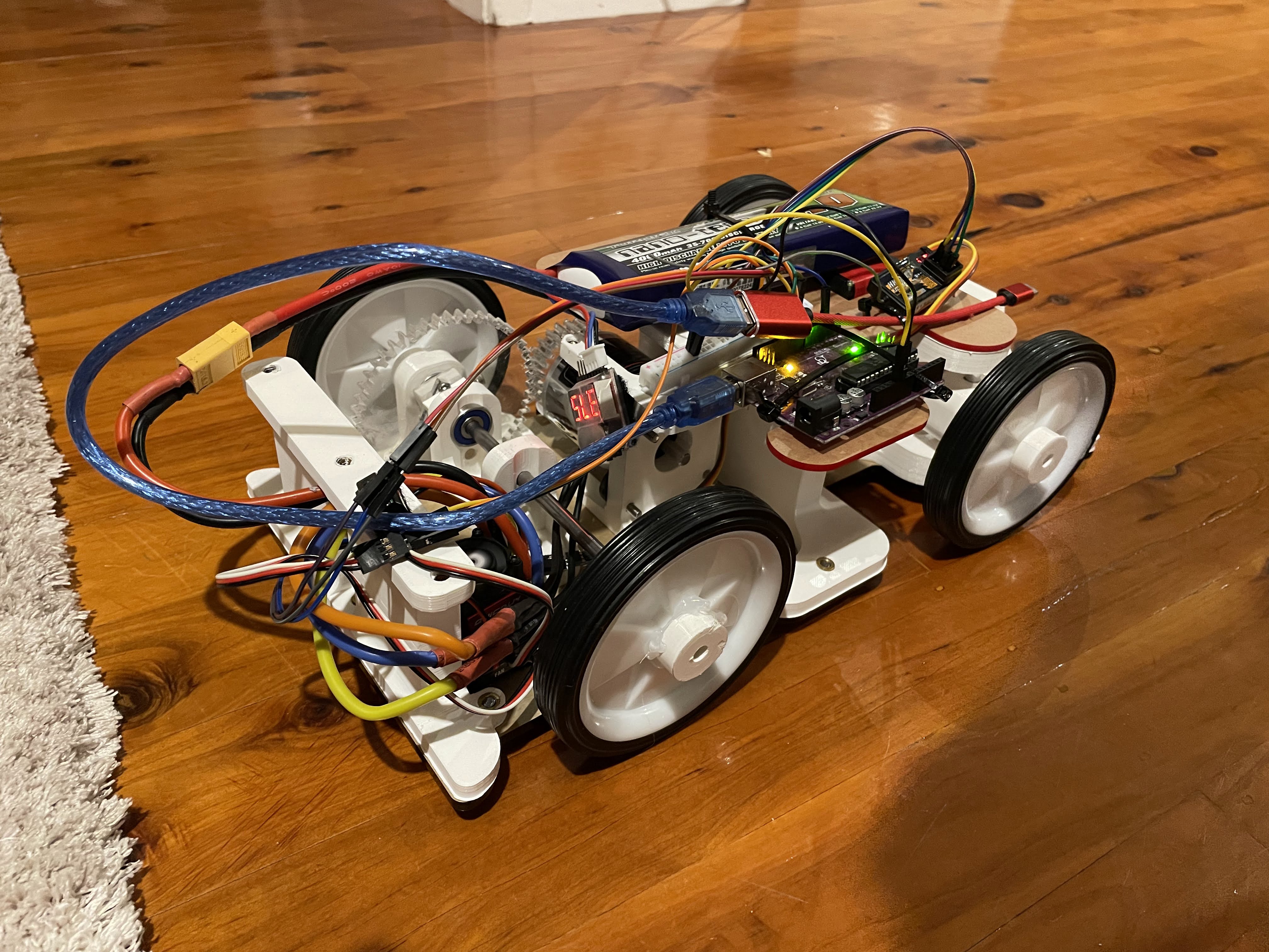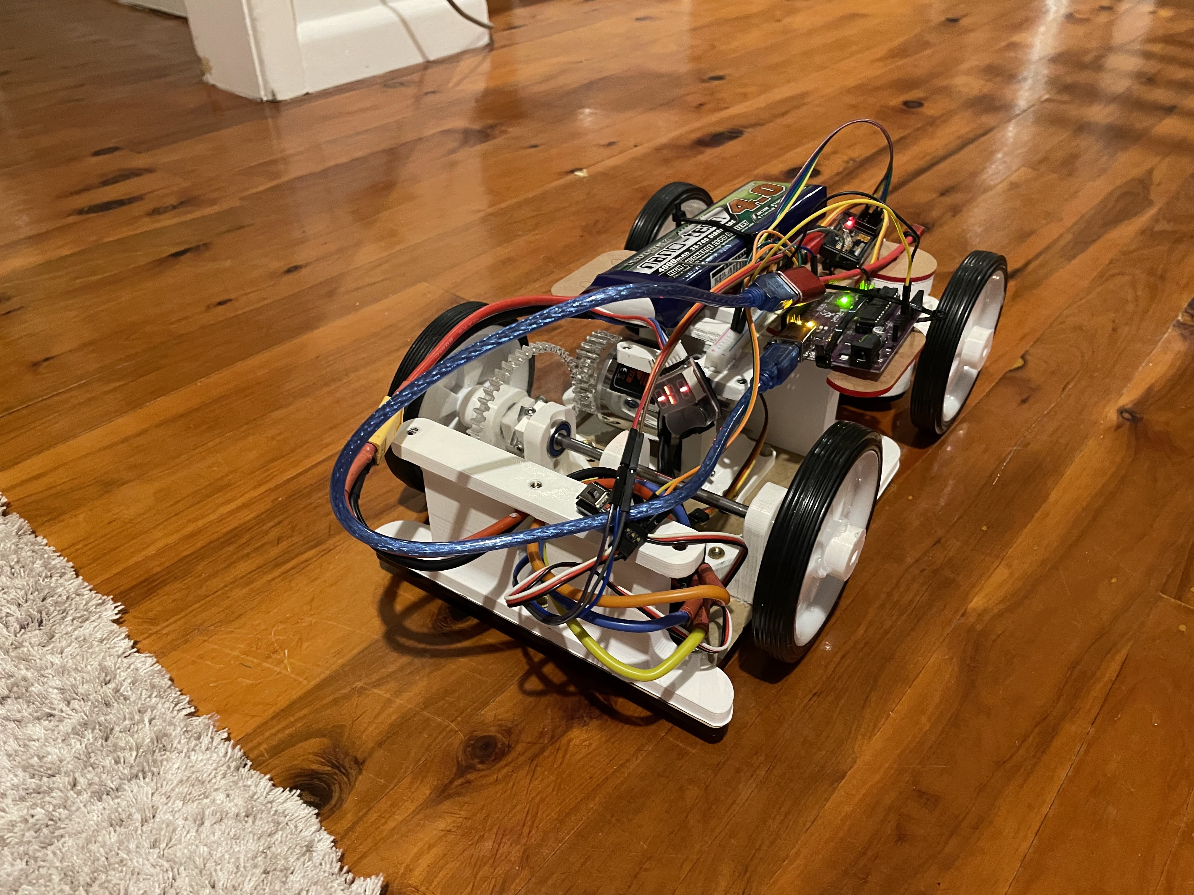- Our entry was a chassis completely designed by our group including the steering (Ackerman) and drivetrain. Most competitors often purchase an already existing RC car kit and modify it to meet their autonomous needs. Our group decided it would be more beneficial to design the chassis and mechanisms completely from scratch. This allowed us to design a tight turning radius and gain much experience using the Mechanical CAD platform UTS provided us, Solidworks.