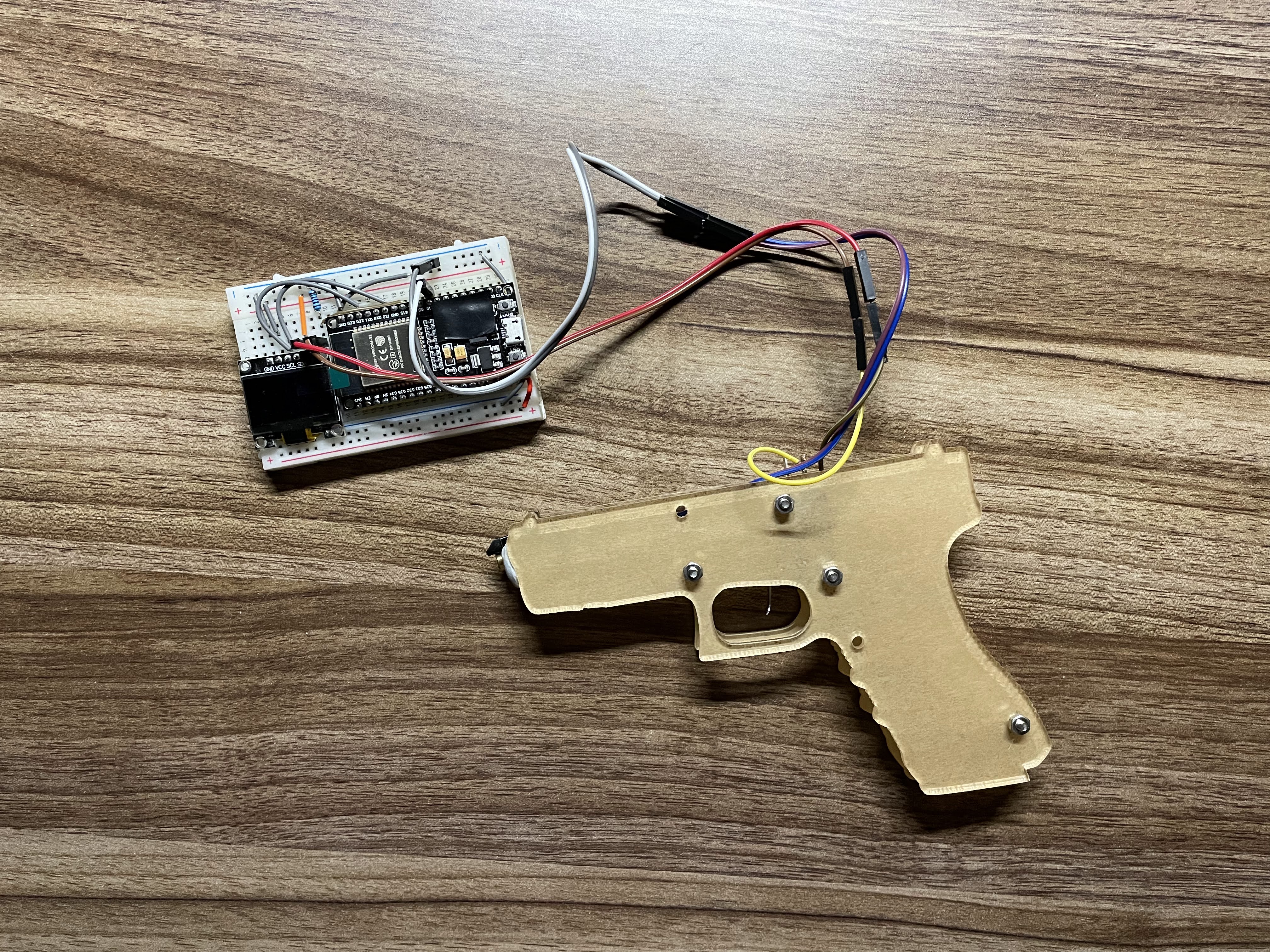 - Wireless communication between the pistol and the target used ESP-NOW protocol on ESP32 microcontrollers.
