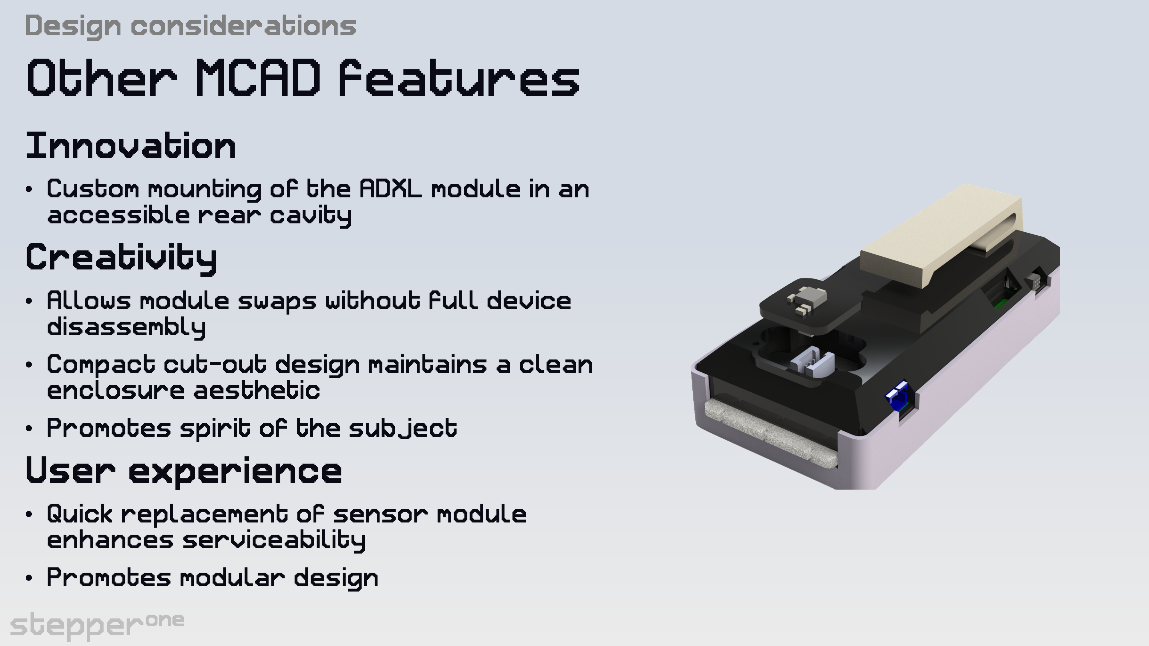 This project was successful and has been nominated by the subject coordinator to participate in UTS's annual 'TechFest'. The showcase is a public event showcasing top performing student groups from subjects within the Faculty of Engineering and IT. With the lessons learned from the semester, a team member and I decided to work on a second revision of the project the with main intent to make the device thinner and more robust.